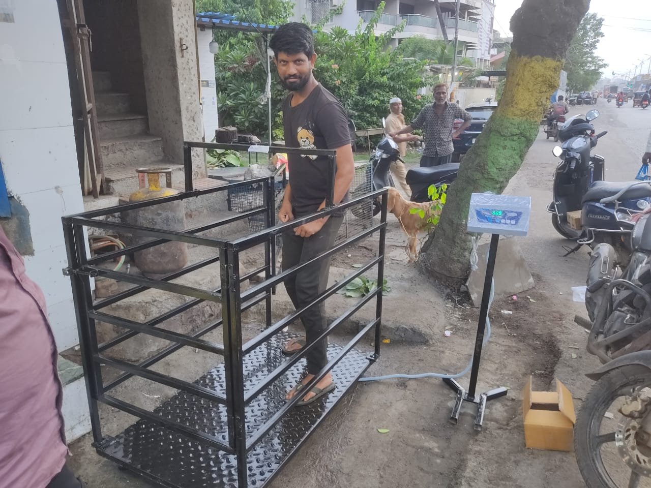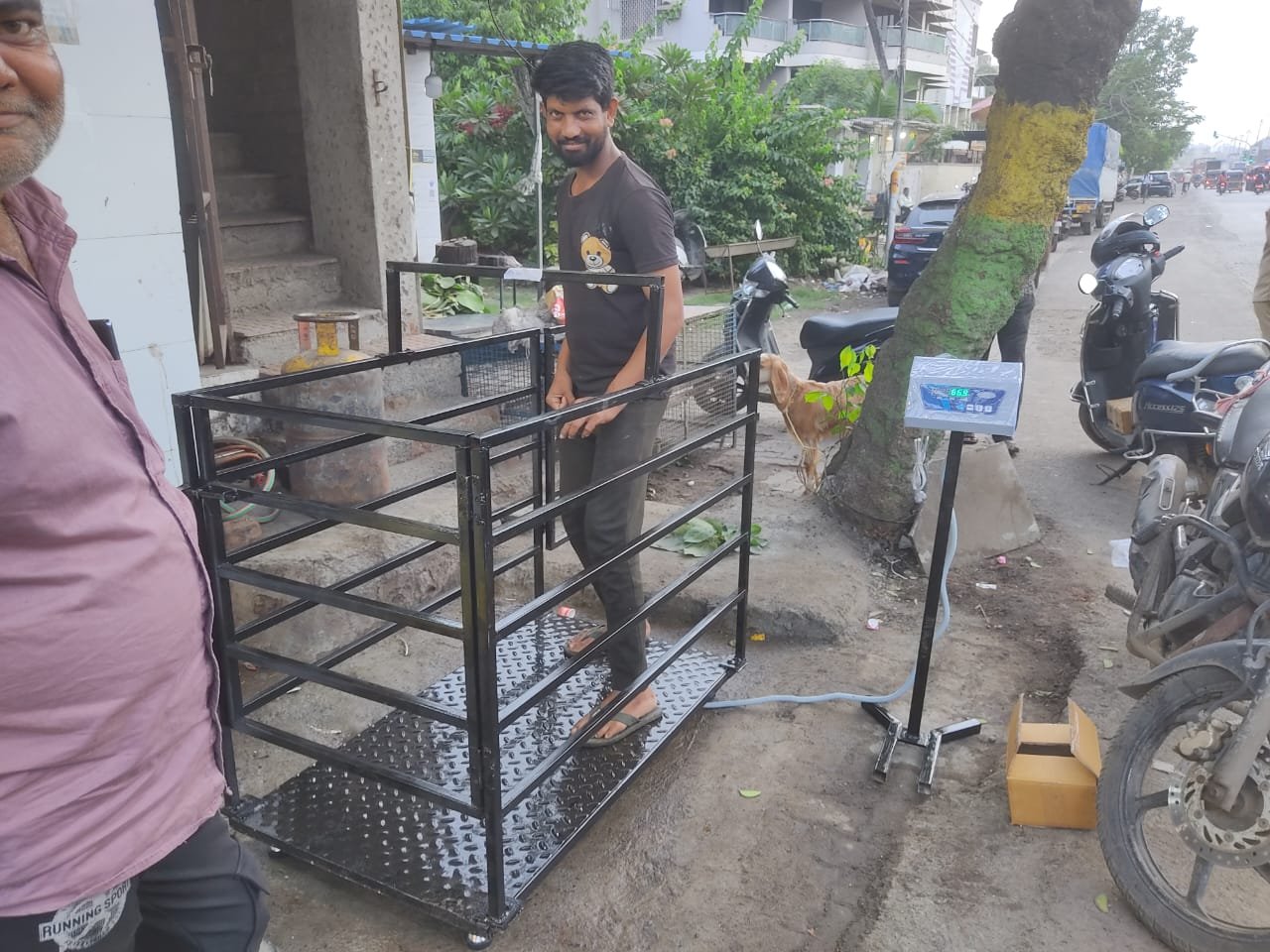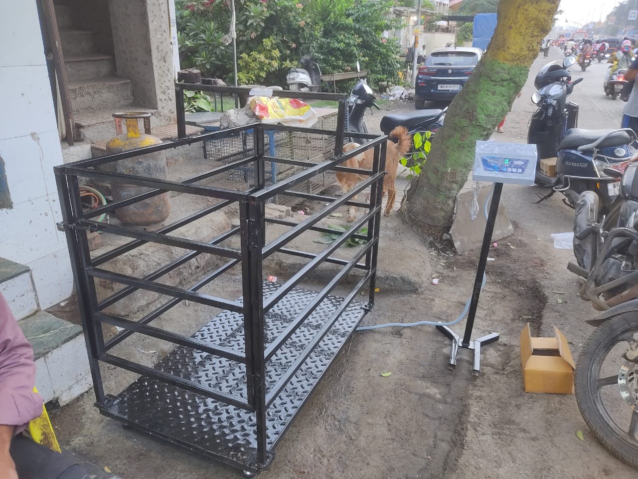 ✔️ Optional cage or railing structure for safe animal containment during weighing.
